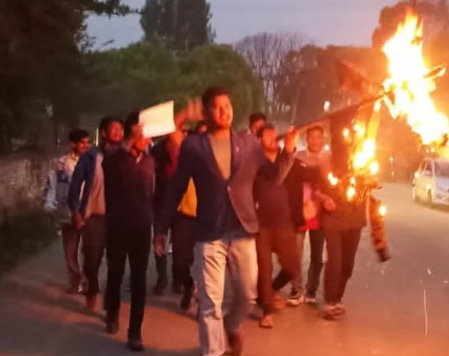 त्यस्तै कीर्तिपुरमा पनि नेविसंघले उनको राजीनामा माग गर्दै पुत्ला दहन गरेको छ । नेविसंघ त्रिभुवन विश्वविद्यालय सभापति विष्णु बडैलाले गृहमन्त्रीलाई कारबाही नहुँदासम्म नेविसंघ चुप लागेर नबस्ने बताए ।