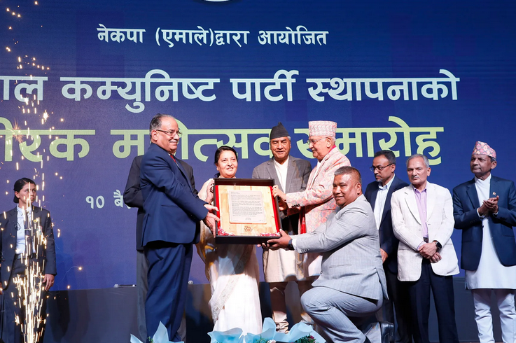 काठमाडौँ । पूर्वराष्ट्रपति विद्यादेवी भण्डारीलाई नेकपा एमालेले पार्टीको हीरक जयन्ती महोत्सवमा राष्ट्रिय गौरव पदकबाट सम्मान गरेको छ । ललितपुरको गोदावरीमा नेकपा स्थापनाको हीरक महोत्सवको विशेष कार्यक्रममा पुर्वराष्ट्रपति भण्डारीलाई राष्ट्रिय गौरव पदकबाट सम्मान गरिएको हो । भण्डारी नेपालको पहिलो महिला राष्ट्रपति समेत हुन् ।
