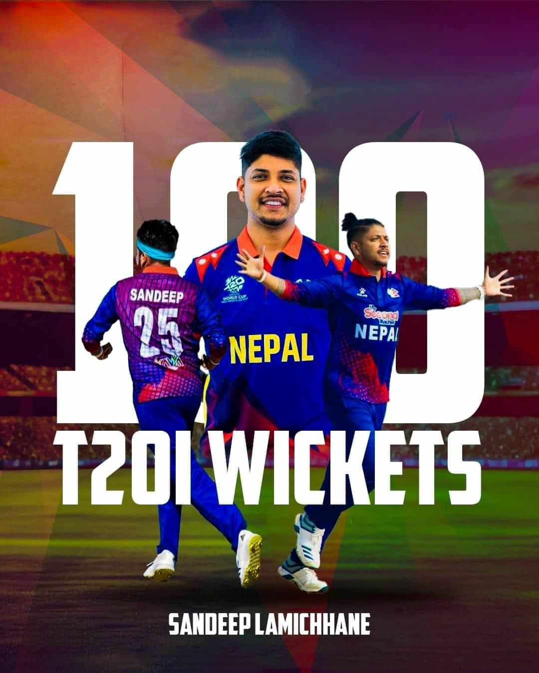 काठमाडौँ । टी–२० क्रिकेटमा नेपालका सन्दीप लामिछानेको एक सय विकेट पूरा भएको छ । वेस्ट इन्डिज र अमेरिकामा जारी टी–२० विश्वकप क्रिकेट अन्तर्गत बंगलादेशविरुद्धको आजको खेलमा २ विकेट लिदै सन्दीपले सयौं विकेट पूरा गरेका हुन् ।