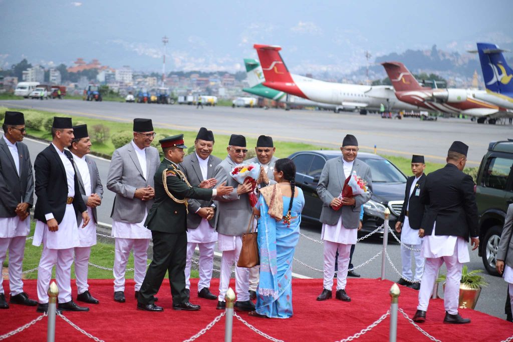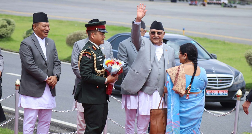 प्रधानमन्त्री ओलीलाई त्रिभुवन अन्तर्राष्ट्रिय विमानस्थलको अतिविशिष्ट कक्षमा उपप्रधानमन्त्री एबम् सहरी विकासमन्त्री प्रकाशमान सिंह, उपप्रधानमन्त्री एवम् अर्थमन्त्री विष्णुप्रसाद पौडेल, प्रतिनिधि सभाका सभामुख देवराज घिमिरे, राष्ट्रिय सभाका अध्यक्ष नारायणप्रसाद दाहाल, सञ्चार तथा सूचना प्रविधिमन्त्री पृथ्वीसुब्बा गुरुङसहित मन्त्रिपरिषद् सदस्यले बिदाइ गरेका छन्।