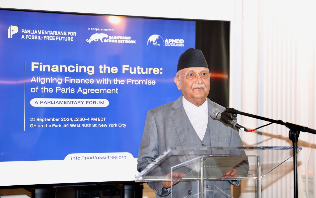 प्रधानमन्त्री ओलीले स्थानीय समयअनुसार शनिबार दिउँसो आयोजित जीवाष्म इन्धनमुक्त संसदीय सञ्जाल (पार्लियामेन्टेरियन्स फर फोसिल फ्युल फ्रि) को कार्यक्रममा मुख्य वक्ताका रूपमा सम्बोधन गर्दै क्षतिपूर्ति दिनुपर्ने विषय उठाएका हुन्।