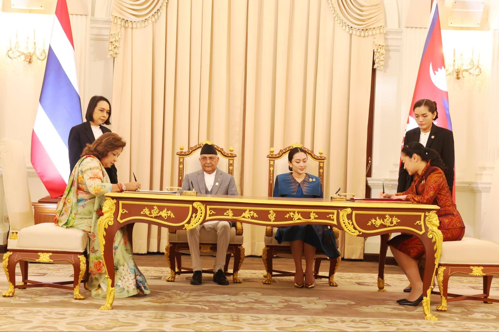 थाइल्याण्डको औपचारिक भ्रमणमा रहेका प्रधानमन्त्री केपी शर्मा ओली र थाइल्याण्डका प्रधानमन्त्री पे थिङ् शिनावात्को उपस्थितिमा आज ती समझदारीपत्रमा हस्ताक्षर भएका हुन्।